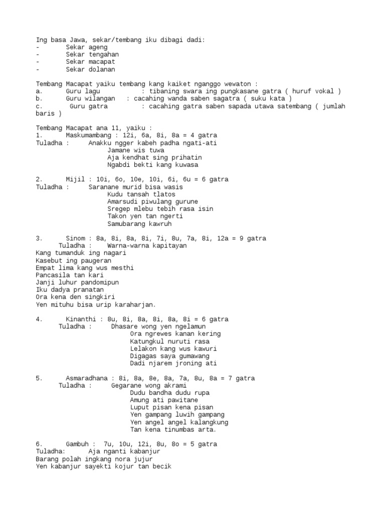 Maybe you would like to learn more about one of these? Tembang macapat iku kaiket ing paugeran. We did not find results for: Check spelling or type a new query.