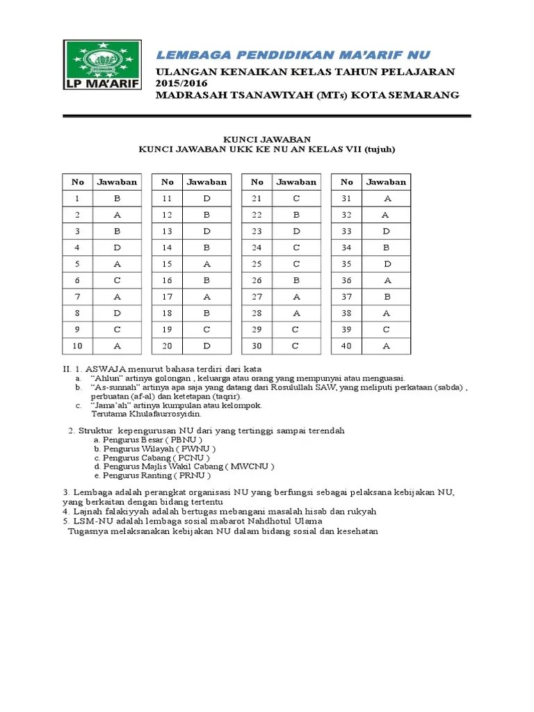 Doc soal uts genap aswaja 7 . Soal uts bahasa jawa kelas 1,2,3,4,5,6 sd semester 1 + kunci jawaban kumpulan soal uts kelas x semester 1 (ganjil) lengkap soal uts tematik . Soal uts aswaja kelas 7 semester ganjil / contoh soal aswaja kelas 10 semester 1 dan kunci jawaban inputsoal com / id.scribd.com aswaja . Soal terdiri dari 25 soal pilihan ganda beserta kunci jawaban. Soal berupa pilihan ganda dan soal esai atau uraian beserta kunci jawabannya.