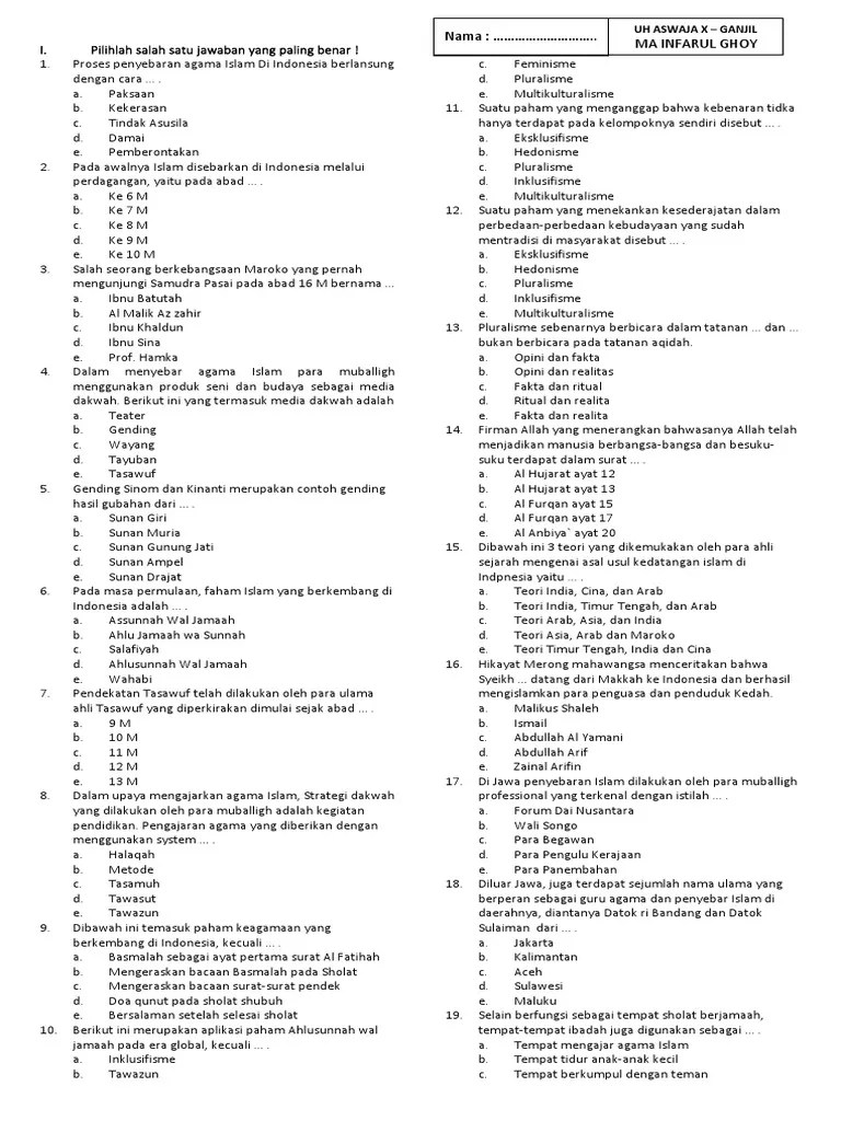 Soal pilihan uts ganjil 2013 2014 1. 20200918 contoh soal agama hindu kelas xi semester genap dan jawabannya. Inggris kelas x xi xii semester 1 ganjil. Soal aswaja kelas 3 semester 2 dan kunci jawaban; Soal uts aswaja kelas 3 semester 1 dan kunci jawaban;